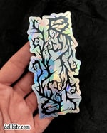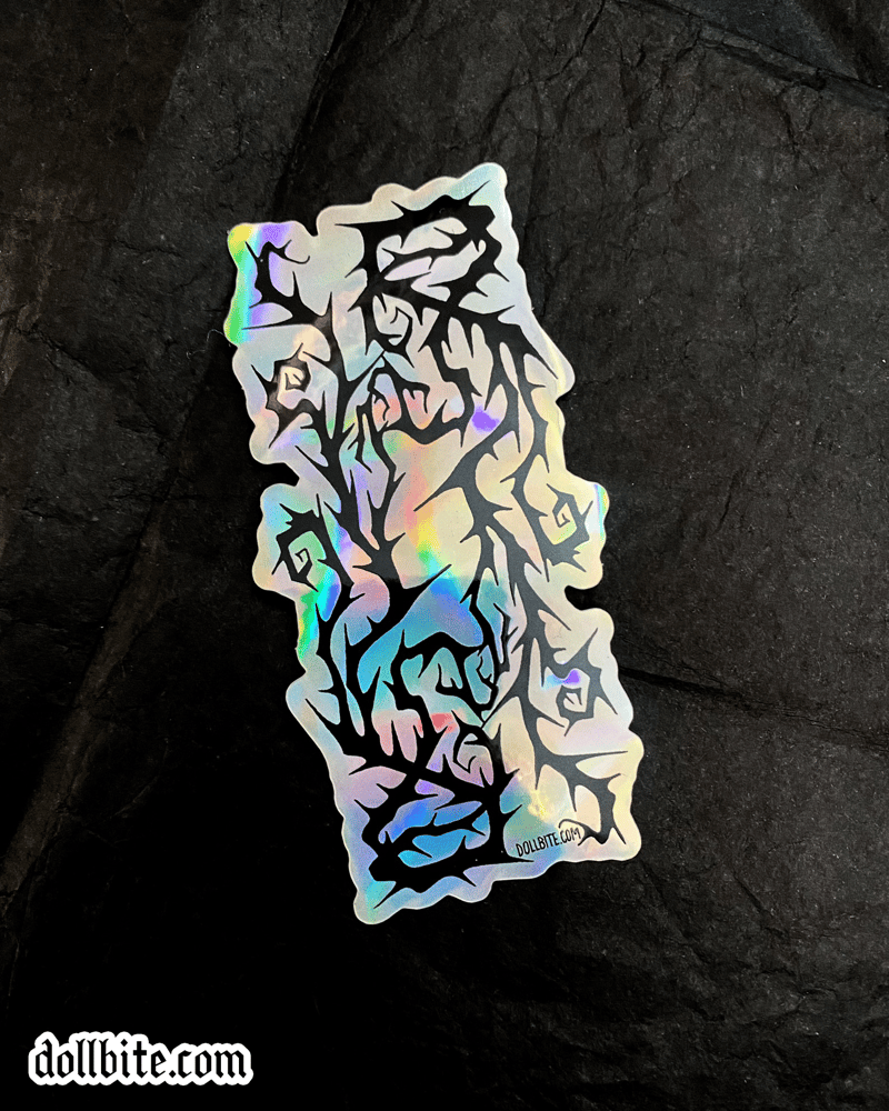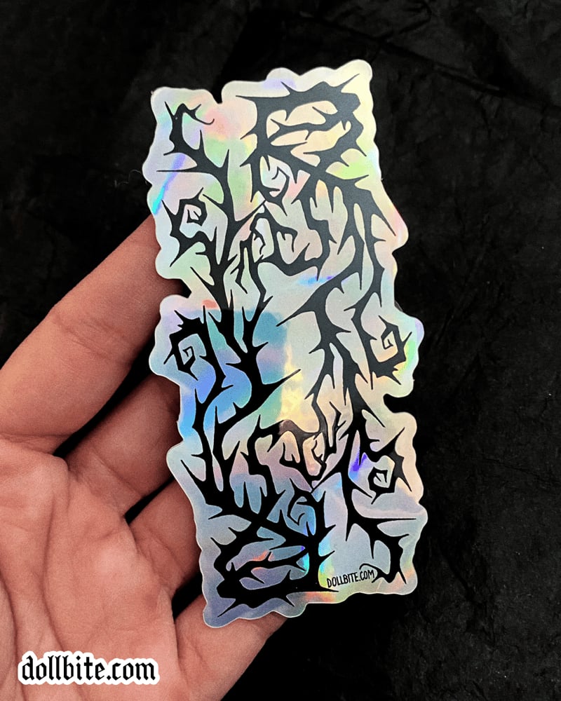 Waterproof & weather-resistant iridescent vinyl stickers, measuring approximately 2x4.1”