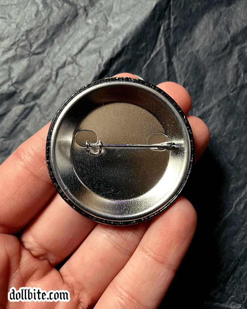 1.75” button-style pins with a glossy finish.