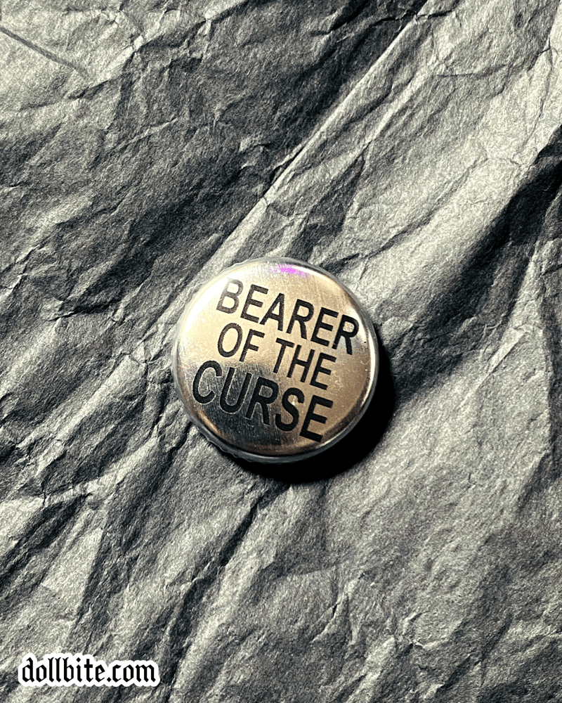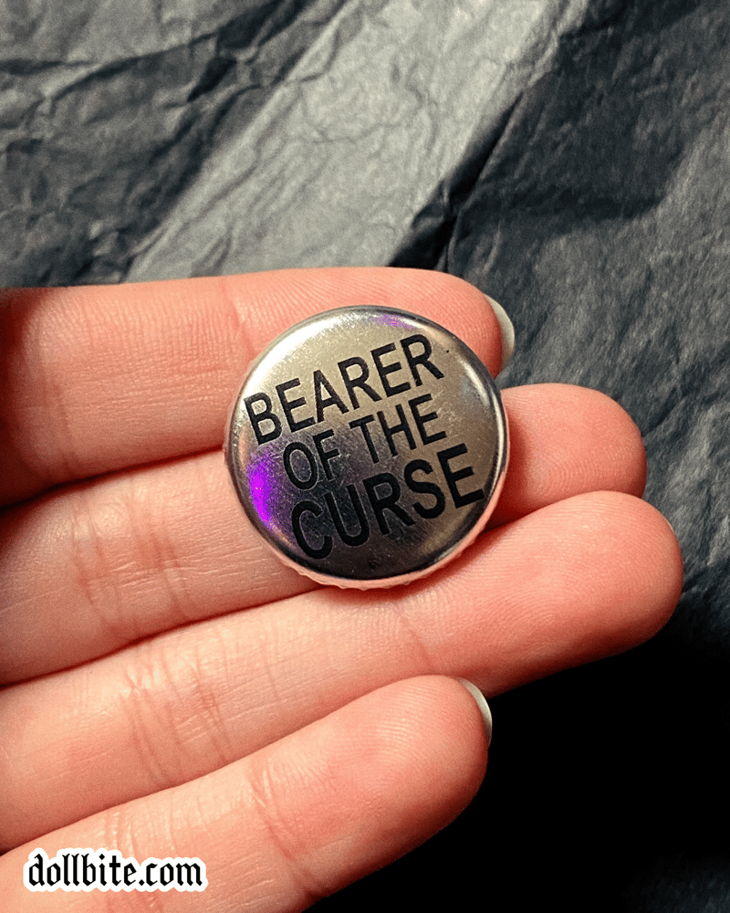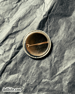 1” round button-style pins, with a metallic finish. Backing is adjustable—just turn it clockwise until it’s where you want it!