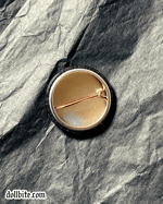1” round button-style pins, with a glossy finish. Backing is adjustable—just turn it clockwise until it’s where you want it!