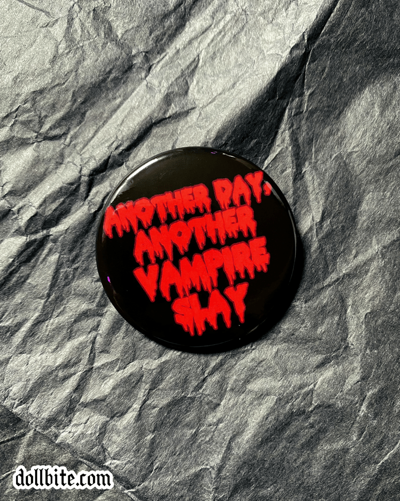 1.75” button-style pins with a glossy finish.